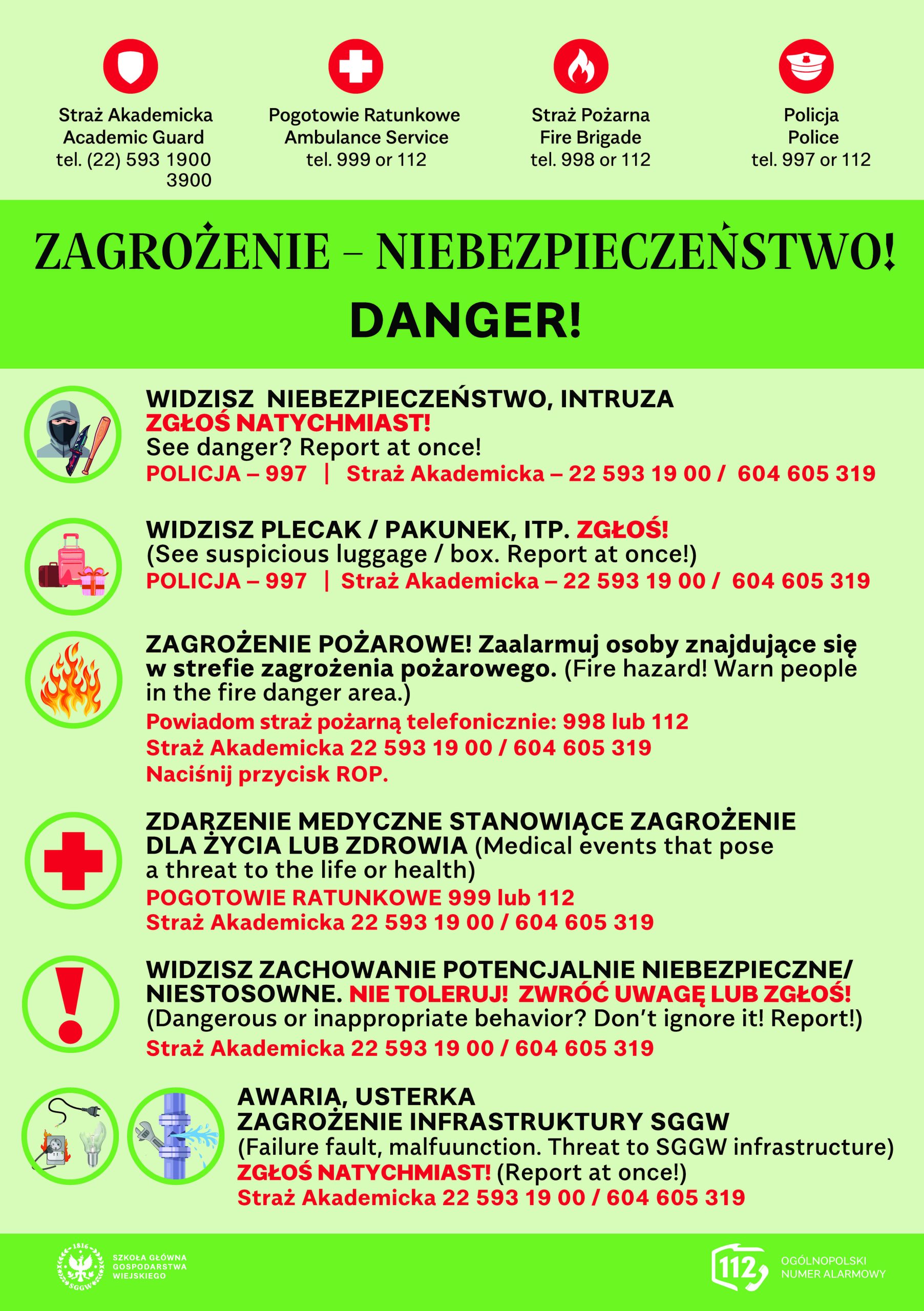 Zapoznaj się ze schematami postepowania w przypadku niebezpieczeństwa na kampusie SGGW
